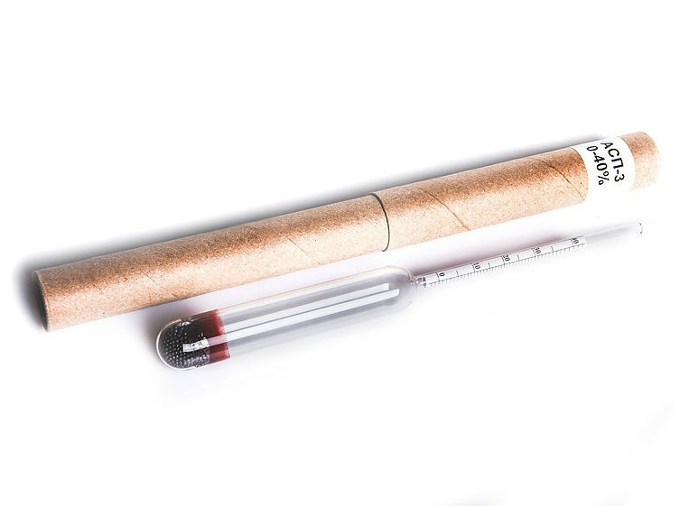 Ареометр АСП-3 0-40% ГОСТ 18481-81 - высокоточный лабораторный инструмент, который подойдет любому самогонщику. Поставляется в прочном картонном тубусе.