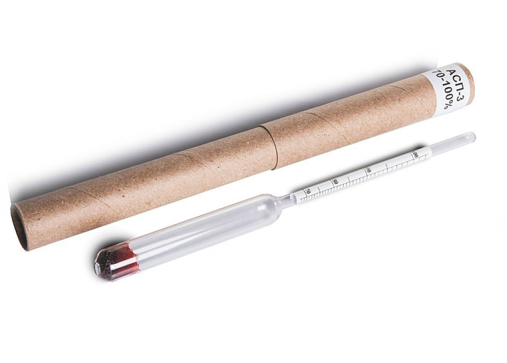 Ареометр АСП-3 - лабораторный спиртомер, максимально точно определяющий объемную часть этилового спирта, содержащегося в водном растворе. Спиртомер показывает процентное содержание спирта в диапазоне от 70 до 100%.