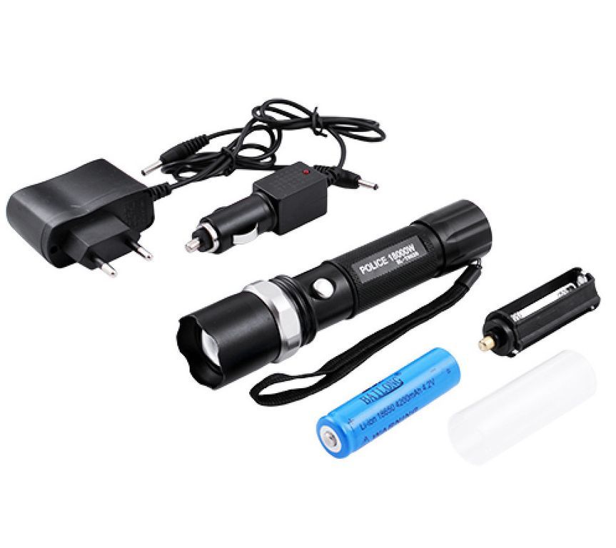 Карманный мощный фонарь Police BL-T8626 50000W с зумом справится со всеми пославленными перед ним задачами: пользуйтесь им дома или на даче, берите с собой в поход или на рыбалку, либо, просто положите в бардачок вашего автомобиля и в самый нужный момент, фонарь окажется у вас под рукой! Фонарь комплектуется перезаряжаемым аккумулятором 18650 для длительной работы без подзарядки. Police BL-T8626 50000W распространен среди полицейских и спецслужб. Оснащён можным зумом и может работать не только от аккумулятора, но и от обычных батареек АА.